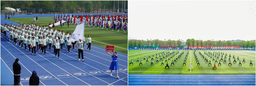 图1.开幕式教职工方队&八段锦表演