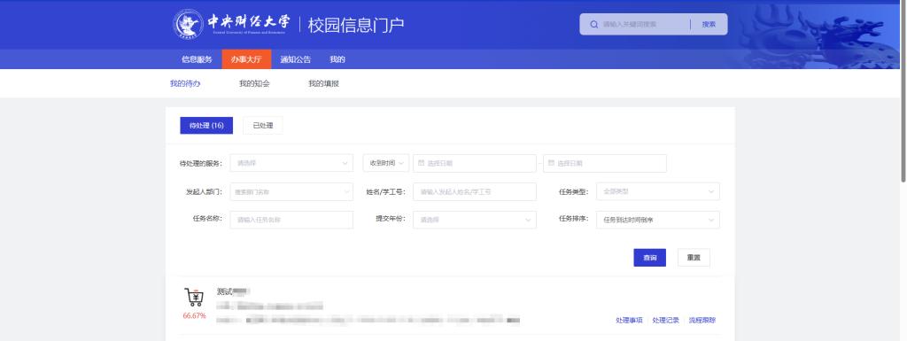 在【我的待办】栏目中,可看见需要审批的事项,点击进入处理页面。