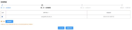 2.选择接收邮箱后点击“提交订单”;
