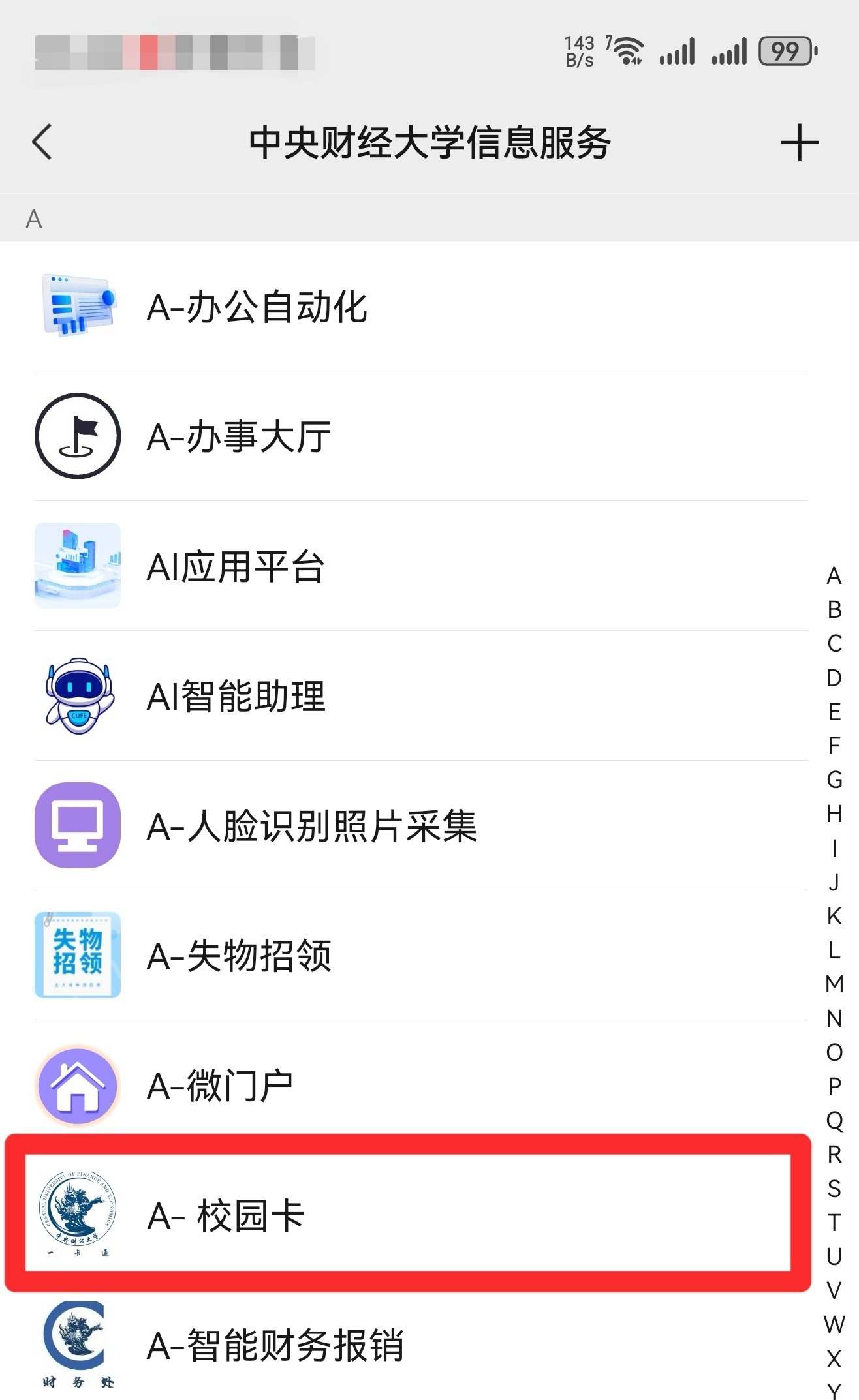 用户可在微信小程序中搜索“中央财经大学校园卡”(如图一),或在“中央财经大学信息服务”微信企业号中查找“A-校园卡”(如图二),本次调整同时优化了排序,便于师生查找使用。