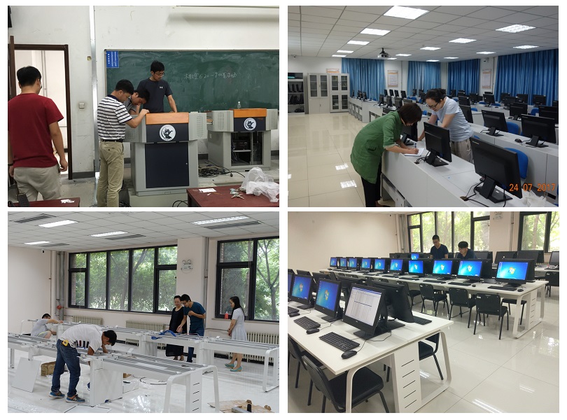 暑假期间,中心承担了沙河校区公共教室监控系统和中控系统改造、两校区公共教室无线话筒设备安装、沙河校区实验室环境改造和电脑更新以及学院南路校区实验室电气改造等6个项目。放假前中心进行了周密的前期准备,组织施工单位召开项目协调会,确认项目方案,制定实施计划,并制作了项目施工手册。6个项目的实施贯穿整个暑假,时间紧、任务重,而且内容十分繁杂。中心工作人员克服酷暑困难,每天对照施工计划和实施标准检查施工质量、详细记录施工手册、对隐蔽工程和布线拍照留档,还需协调各项目实施配合,与施工单位一起解决施工过程中出现的各类技术问题,遇到重要实施节点更要陪同施工单位加班加点,甚至通宵实施调试,在保证工程质量的前提下确保项目如期完成。沙河校区全部公共教室更换了崭新的多媒体讲桌及中控和监控系统;两校区公共教室和部分实验室安装了红外无线话筒接收器;沙河校区4个实验室的电脑全部进行了更新;102实验室按照互动教学的需求重新设计装修,教学环境焕然一新。