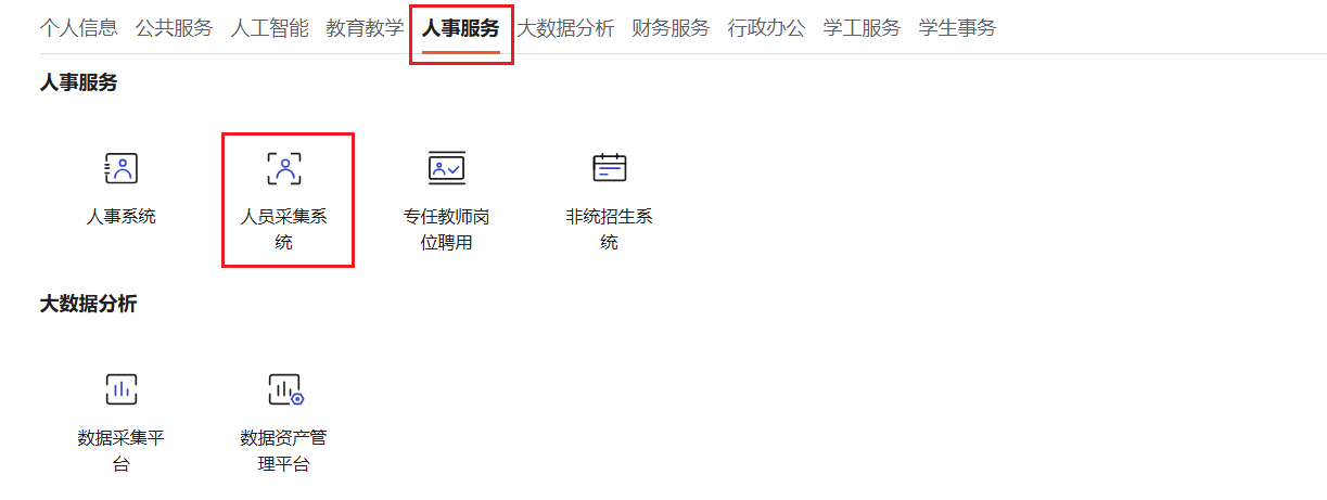1. 登录校园门户,从人事服务模块进入人员采集系统;