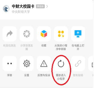 (2)“校园码”或扫码功能出现“网络”异常,请重新进入小程序。